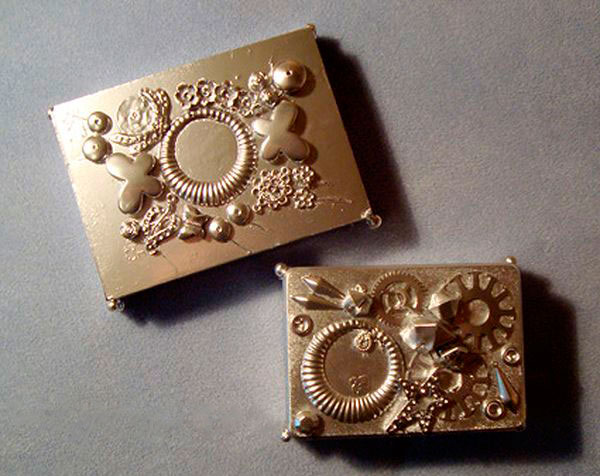 В это время можно заняться декором верхней крышки. Ее уже оформляем по своему вкусу. Будет в разы лучше, если верхняя крышка выйдет фактурной. Клеевым пистолетам крепим всевозможную фурнитуру. Можно даже с его помощью сделать надписи.